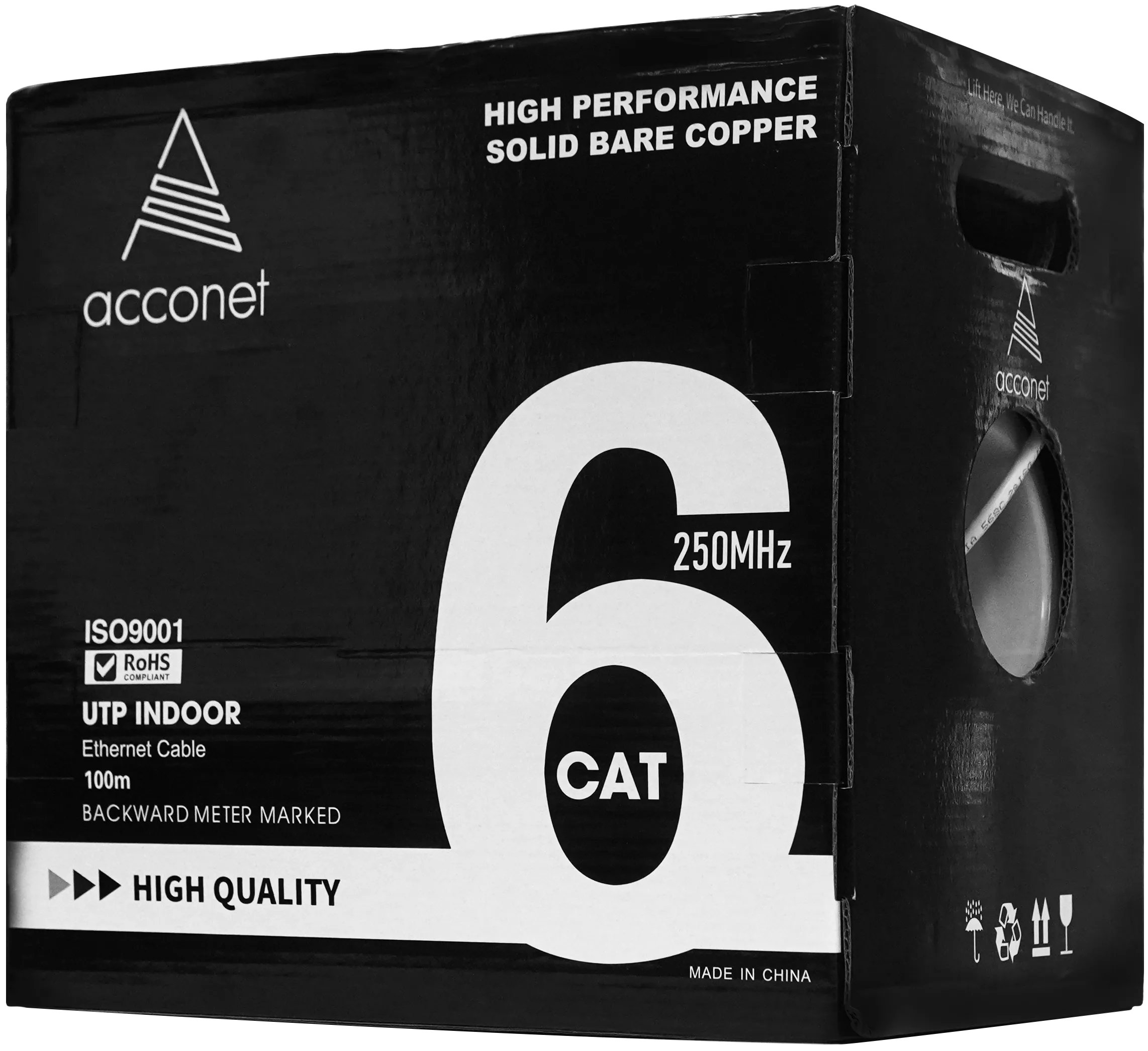 Acconet CAT6 UV Outdoor Ethernet Cable 100m Black CCA SF/TP Pull Box| CAT6-100-U
